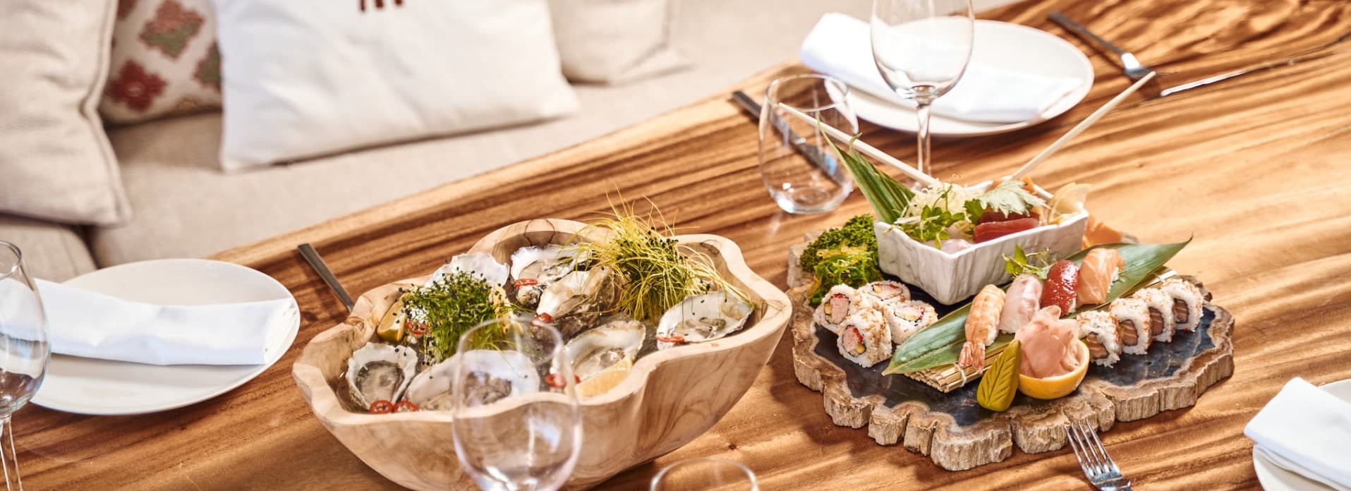 The Hippie Fish Restaurant is open for lunch and dinner, and mainly serves fish, seafood and Mediterranean dishes. It can be reserved for special events, parties and weddings, and has a capacity for 300 seated people or 600 standing . The menu, decoration and music may vary, based on the occasion and guests’ demands and budget. Moreover, there are loungers and parasols directly in front of the restaurant, where guests can also be served while on the beach.